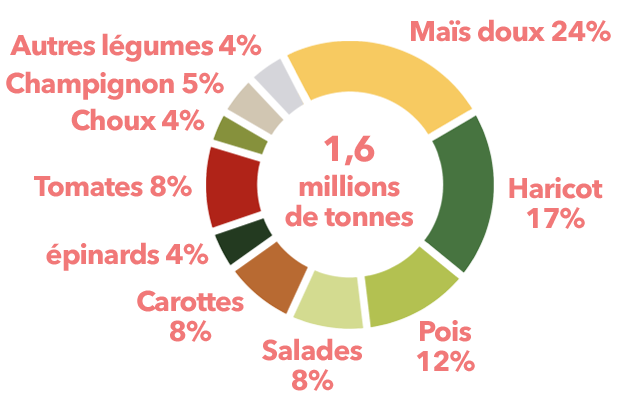 Les conditions pédoclimatiques françaises sont particulièrement adaptées au développement des fruits et légumes à destination de la transformation. Plusieurs bassins de production sont répartis sur l’ensemble du territoire et participent à la vitalité des zones rurales.